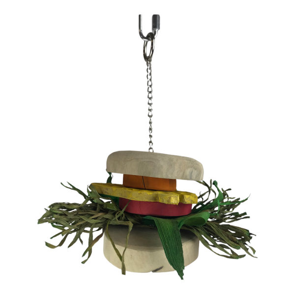 BURGER – everyone loves a BURGER. Use your imagination! Thread seed spray through the swiss cheese. Great for all size pets.