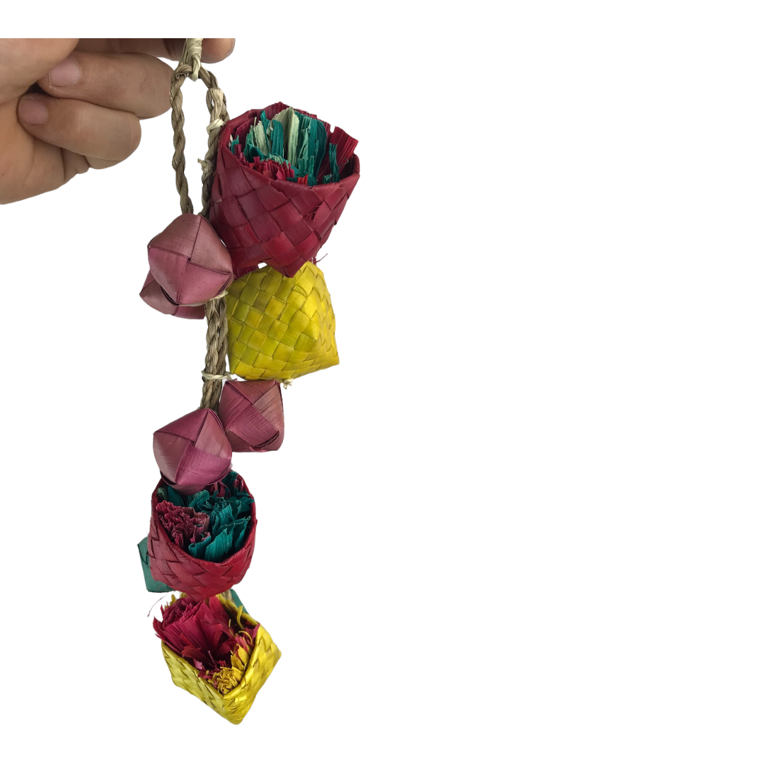 TREE HOUSES – little cups of ALL NATURAL colourful fun from finches to macaws. Climbing for some, foraging for others. Either way stimulated birds are content birds.